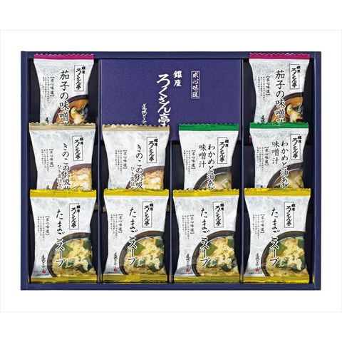 ■商品セット内容:たまごスープ×4、わかめと油あげの味噌汁×2、茄子の味噌汁×2、きのこのお吸物ひき雲仕立×2