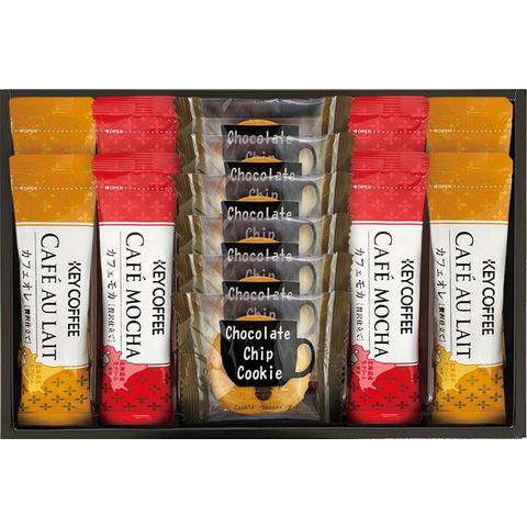 ■商品セット内容:チョコチップクッキー×6、キーコーヒーカフェオレスティック7g×4、キーコーヒーカフェモカスティック7.8g×4