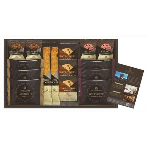 ■商品セット内容:ロングスティックパイ×2、ゴーフレット(バニラ・ストロベリー)×各3、チョコクランチ(ミルク・ストロベリー)×各2、チョコチップクッキー×3
