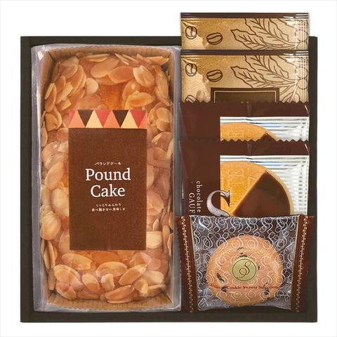 ■商品セット内容:アーモンドパウンドケーキ、ドリップコーヒー7g×2、ゴーフレット(チョコ)×2、チョコチップクッキー