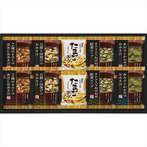 ■セット内容:たまごスープ6.4g、とうふと油揚げのおみそ汁、2種のきのこの赤だしおみそ汁、あおさとわかめのおみそ汁、オクラ入ねばねば野菜スープ×各2