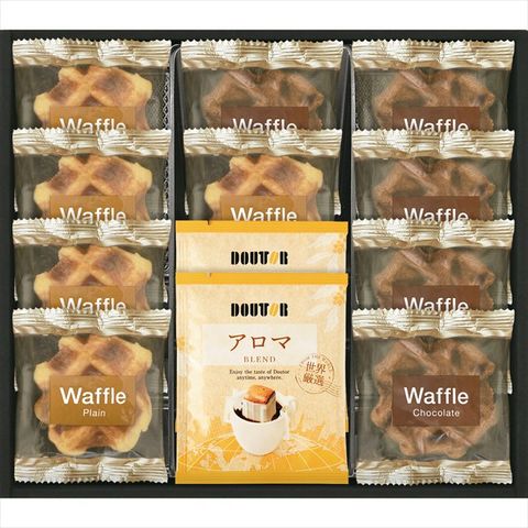 ■セット内容:ドトールドリップコーヒー7g×4、ラスク(シュガー・ココナッツ)×各2、ワッフル(プレーン・チョコ)×各2、ナッツとチョコのざっくりクッキー×2、レモンケーキ