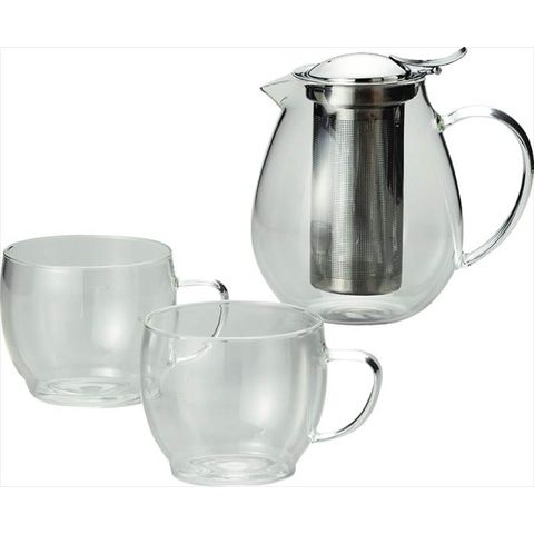 ■商品内容・サイズ:カップ(φ8×6.5cm)×2、ポット(13.5×10×12.5cm・580ml)×1