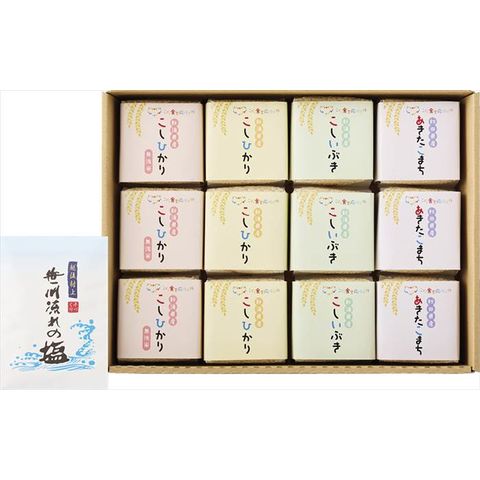 ■商品内容・サイズ:魚沼産コシヒカリ・新潟県産コシヒカリ・新潟県産こしいぶき・秋田県産あきたこまち(各300g)×各3、笹川流れの塩(80g)×1