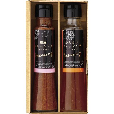 ■商品内容・サイズ:ドレッシング(胡麻・かんきつ)(各100ml)×各1