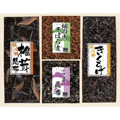 ■商品内容・サイズ:椎茸昆布・きくらげ(各70g)・畑の肉そぼろ煮・ごま昆布(各30g)×各1