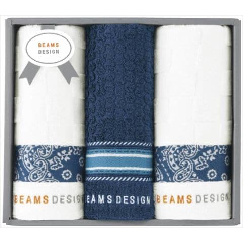 BEAMS DESIGN チェッカーバンダナ フェイスタオル3P 51-3139300NB ネイビーブルー 内祝 内祝い お祝 御祝 記念品 出産内祝い プレゼント 快気祝い 粗供養 引出物