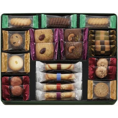 ■商品内容・サイズ:ツイストクッキー(2種)×9、コルベイユ(4種)×8、クッキー(ヘーゼルナッツ・レモン)×各4、アメリカンリングクッキー×3、クッキー(アーモンド・カシューナッツ・抹茶&プレーン・ココア&プレーン)・マカロン(ストロベリー・アーモンド)×各2