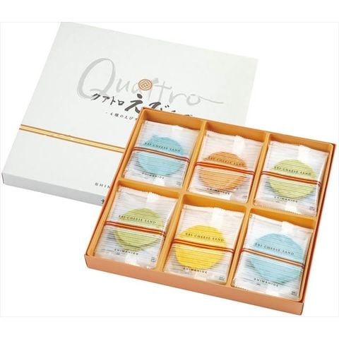■商品紹介:クアトロ(QUATTRO)とは、イタリア語で「4」を表す言葉。志満秀オリジナルの4種のチーズクリームをえびせんべいでサンド。例えばモッツァレラとバジル、ブルーチーズと蜂蜜はイタリア料理でおなじみのコンビ。お気に入りのワインのおともに、またパーティやお茶会など様々なシーンでお楽しみいただけます。