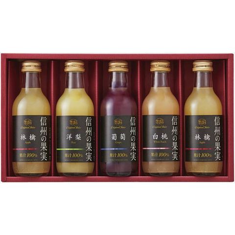 ■商品内容・サイズ:ジュース(林檎)(200ml)×2、ジュース(洋梨・葡萄・白桃)(各200ml)×各1