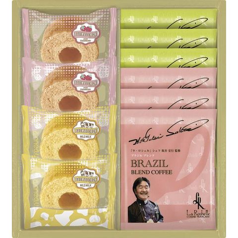 ■商品内容・サイズ:ドリップコーヒー(ブラジルブレンド・キリマンジャロブレンド)(各7g)×各3、バウムクーヘン(ミルク・あまおういちご)×各2
