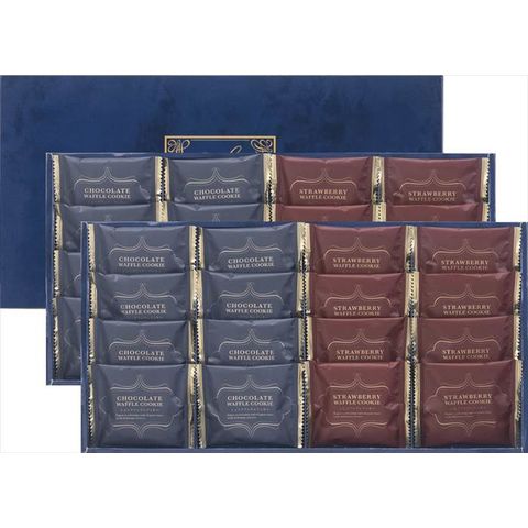 ■商品紹介:サクサク食感のワッフルクッキーにホワイトチョコクリームを詰めた風味豊かなショコラワッフルクッキーといちごチョコクリームを詰めたいちごワッフルクッキーの詰合せです。