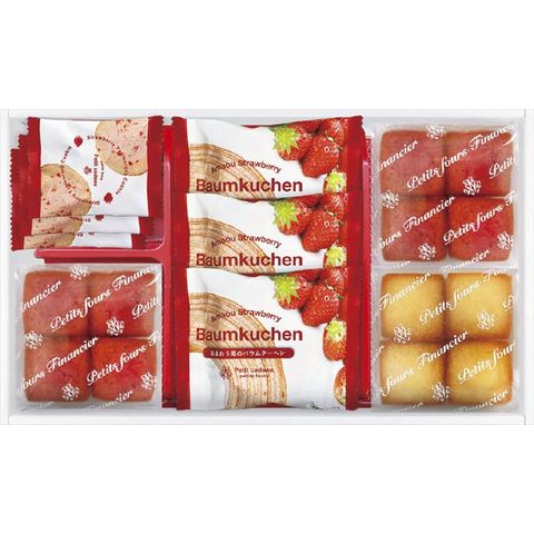 ■商品内容・サイズ:あまおう苺バウムクーヘン・焼きほろろクッキー(イチゴ)×各3、プチフィナンシェ(あまおう苺)(4個入)×2、プチフィナンシェ(プレーン)(4個入)×1