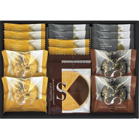 ■商品内容・サイズ:ほろほろクッキー(チーズ・抹茶)×各5、ごろっとナッツフィナンシェ(バニラ・ショコラ)・ゴーフレット(チョコ)×各2