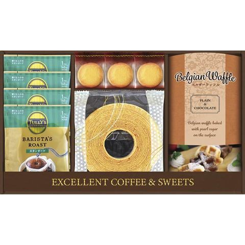 ■商品内容・サイズ:タリーズドリップコーヒー×4、プレーンクッキー×3、ミルクバウムクーヘン・ベルギーワッフル(プレーン(2個入)・ショコラ(1個入))×各1