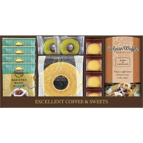 ■商品内容・サイズ:タリーズドリップコーヒー・プレーンクッキー×各4、宇治抹茶ミニバウムクーヘン×2、ミルクバウムクーヘン・ベルギーワッフル(プレーン(2個入)・ショコラ(1個入))×各1
