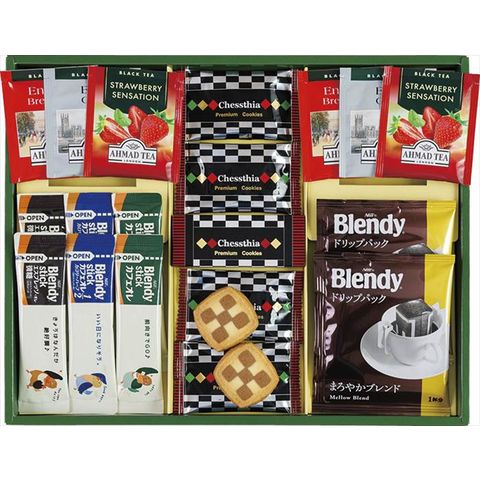 ■商品内容・サイズ:チェスティアクッキー×8、AGFブレンディスティックコーヒーカフェオレ(8.8g)・AGFブレンディドリップコーヒー(7g)・AGFブレンディスティックコーヒーエスプレッソオレ(6.2g)・AGFブレンディスティックコーヒーカフェオレカロリーハーフ(5.4g)・紅茶(アールグレイ・ブレックファースト・ストロベリー)(各2g)×各2