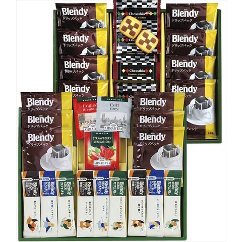 ■商品内容・サイズ:AGFブレンディドリップコーヒー(7g)×14、チェスティアクッキー×12、AGFブレンディスティックコーヒーカフェオレ(8.8g)・AGFブレンディスティックコーヒーエスプレッソオレ(6.2g)・AGFブレンディスティックコーヒーカフェオレカロリーハーフ(5.4g)×各3、紅茶(アールグレイ・ブレックファースト・ストロベリー)(各2g)×各1