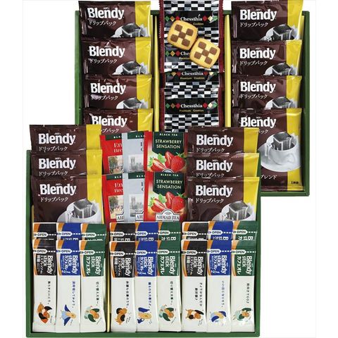 ■商品内容・サイズ:チェスティアクッキー×15、AGFブレンディドリップコーヒー(7g)×14、AGFブレンディスティックコーヒーカフェオレ(8.8g)・AGFブレンディスティックコーヒーエスプレッソオレ(6.2g)・AGFブレンディスティックコーヒーカフェオレカロリーハーフ(5.4g)×各6、紅茶(アールグレイ・ブレックファースト・ストロベリー)(各2g)×各2