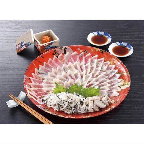 ◆商品内容:とらふぐ刺身(30cm皿)65g、とらふぐ皮30g、とらふぐ身湯引き20g、ふくポン酢10g×4,もみじおろし10g×4