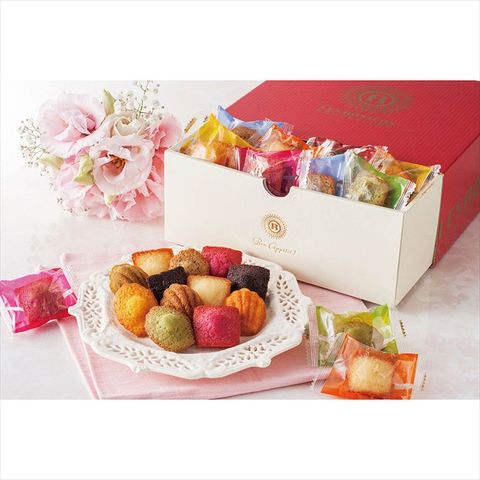 ◆商品内容:フィナンシェ(プレーン、ショコラ、フランボワーズ)×各7、マドレーヌ(ピスタチオ、アールグレイ、マンゴー)×各7(計42)