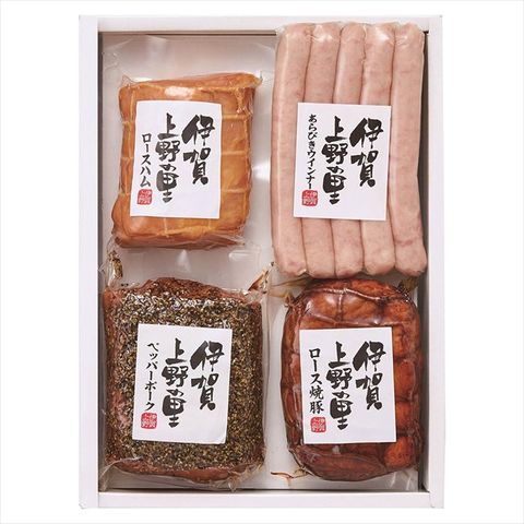 ◆商品紹介:自然豊かな伊賀盆地で一つ一つ丁寧に作り上げました。ロースハム、ロース焼豚、ペッパーポーク、ウインナーのセットです。