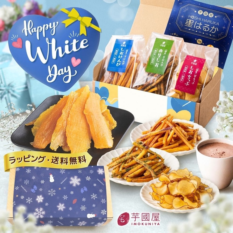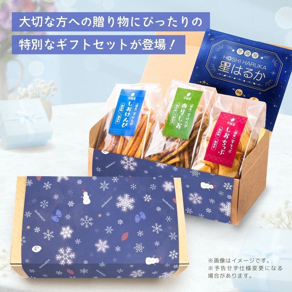 雪の結晶 芋菓子4種セット お芋スイーツ ギフト 干し芋 芋けんぴ 芋チップ プチギフト 和スイーツ 和菓子 プレゼント 詰め合わせ 茨城県産 紅はるか 天日干し お取り寄せ お祝い 冬ギフト kenpi-chip-snow