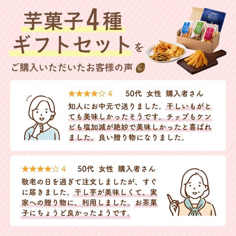 指定日なしは5/4~5/10でお届け 母の日 芋菓子4種セット お芋スイーツ ギフト 干し芋 芋けんぴ 芋チップ プチギフト 和スイーツ 和菓子 プレゼント 詰め合わせ 茨城県産 紅はるか 天日干し お取り寄せ お祝い kenpi-chip-md