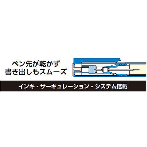 この機能により、書き出しをスムーズにすることを可能にし、カスレも少なく、顔料インキでも濃淡のない筆跡を得ることができます。