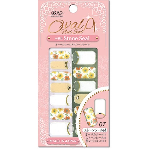 BN ストーン付 オーバルシール (ネイルシール) 水彩フラワー SOV-07