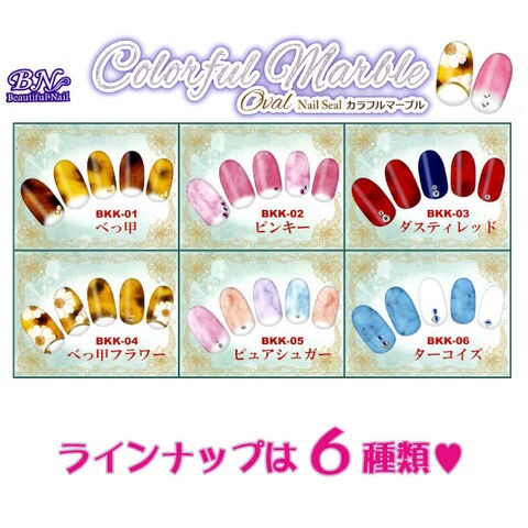 BN オーバル ネイルシール カラフルマーブル ダスティレッド BKK-03