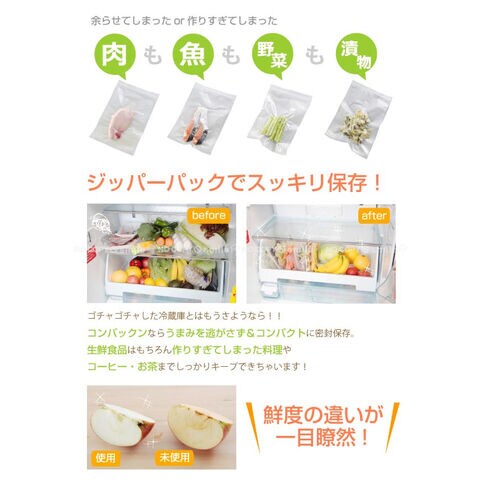 ごちゃつきやすい冷蔵庫・冷凍庫の中、も吸引密封でまとめれば、スッキリ保存できます!