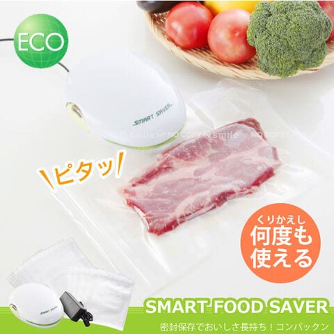 【送料無料】食材の酸化を抑え鮮度長持ち!コンパクトサイズの真空保存器。専用パック10枚付!