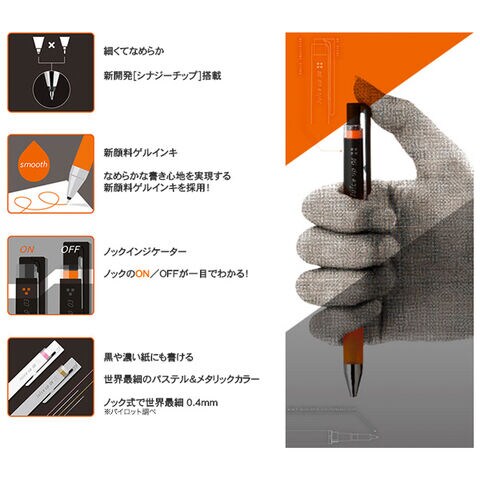 新感覚の濃くやわらかな書き味が生み出すワンランクアップのカラフル激細ゲルインキボールペン。