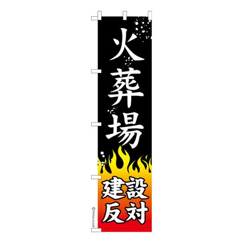 スリム のぼり旗 火葬場建設反対 反対運動 既製品のぼり 納期ご相談ください 450mm幅
