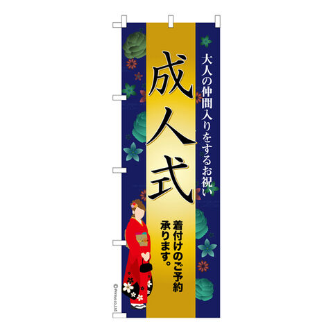 のぼり旗 成人式 着付け ご予約 着物 既製品のぼり 納期ご相談ください 600mm幅