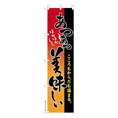 商品名「のぼり旗 あつあつ 美味しい あったまる 既製品のぼり 高品質デザイン【メール便可】」