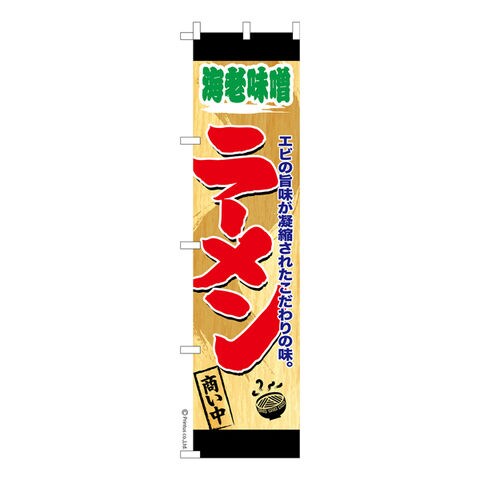 商品名「のぼり旗 海老味噌ラーメン 商い中 既製品のぼり 高品質デザイン【メール便可】」