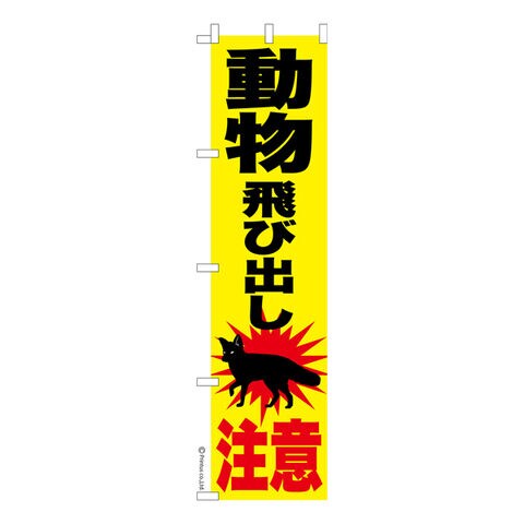 スリム のぼり旗 動物飛び出し注意 キツネ 狐 既製品のぼり 納期ご相談ください 450mm幅