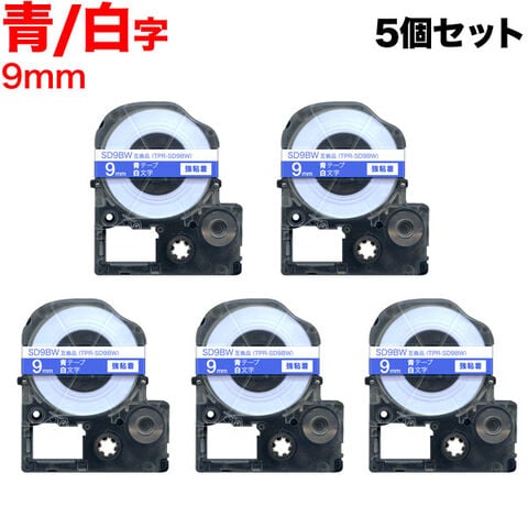 キングジム用 テプラ PRO 互換 テープカートリッジ SD9BW カラーラベル 強粘着 5個セット 9mm/青テープ/白文字