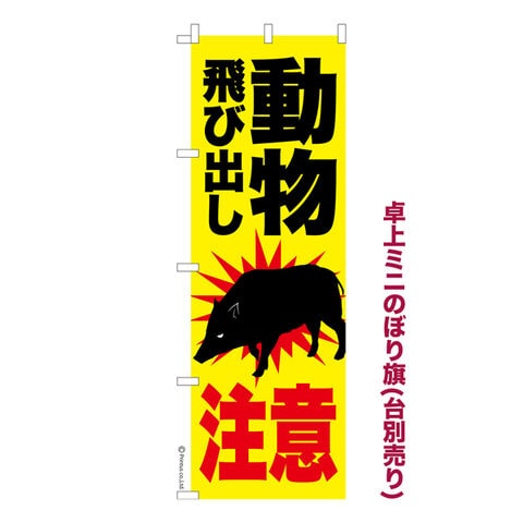 卓上ミニのぼり旗 動物飛び出し注意 イノシシ 猪 既製品卓上のぼり 納期ご相談ください 卓上サイズ13cm幅