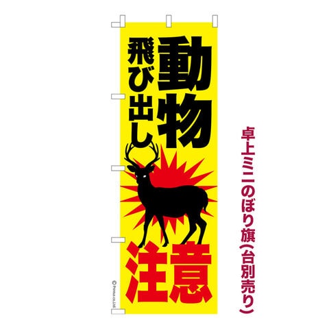 商品名「ミニのぼり旗 動物飛び出し注意 シカ 既製品ミニのぼり 高品質デザイン【メール便可】」
