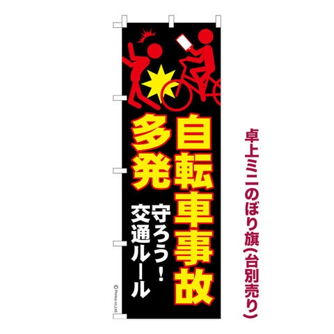 商品名「ミニのぼり旗 自転車事故多発 既製品ミニのぼり 高品質デザイン【メール便可】」