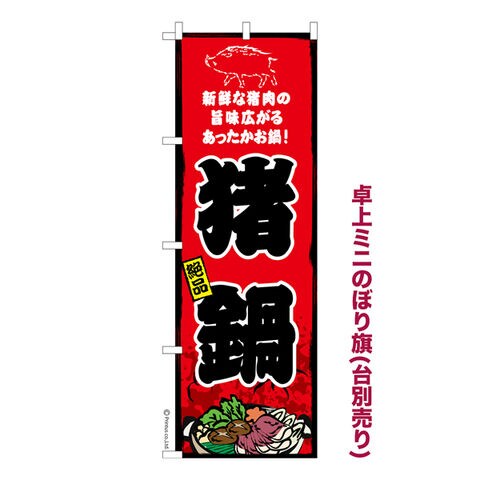 商品名「ミニのぼり旗 猪鍋 既製品ミニのぼり 高品質デザイン【メール便可】」