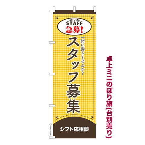 卓上ミニのぼり旗 急募!スタッフ募集 求人 既製品卓上のぼり 納期ご相談ください 卓上サイズ13cm幅