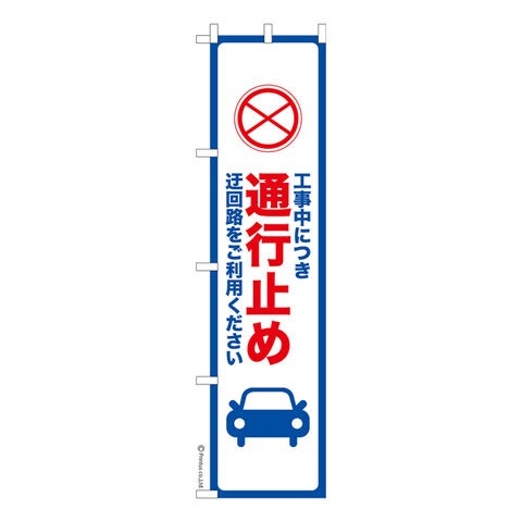 スリム のぼり旗 通行止め 工事中 既製品のぼり 納期ご相談ください 450mm幅