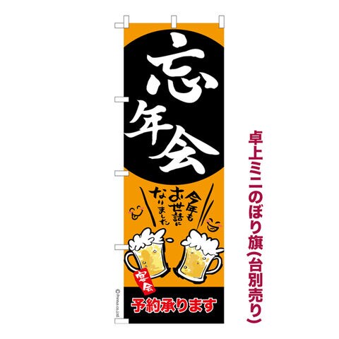 商品名「既製品ミニのぼり旗 忘年会 高品質デザイン メール便可」