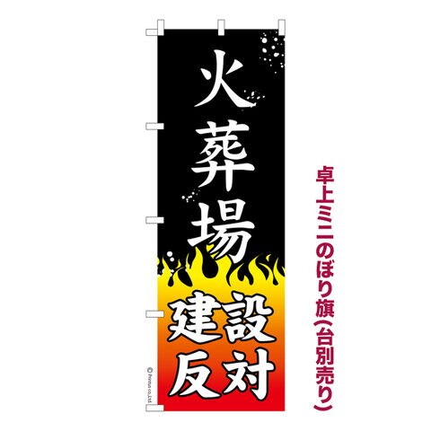 卓上ミニのぼり旗 火葬場建設反対 反対運動 既製品卓上のぼり 納期ご相談ください 卓上サイズ13cm幅