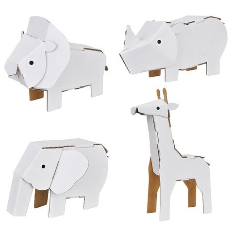 ダンボールに好きな色を塗って、組み立てて、目のシールを貼って楽しもう!