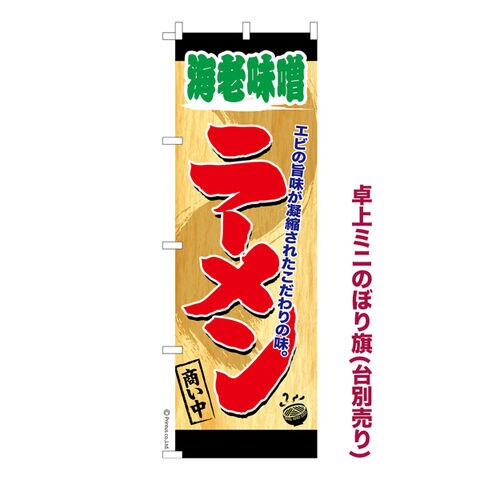 商品名「既製品ミニのぼり旗 海老味噌ラーメン 商い中 高品質デザイン メール便可」